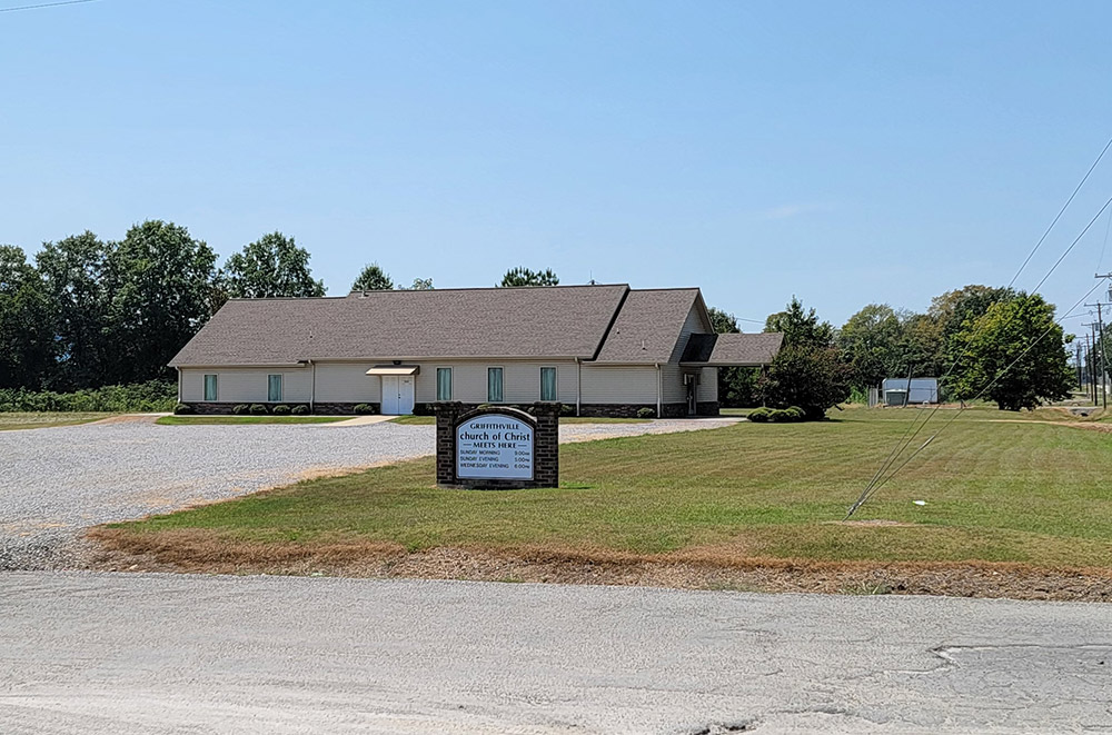 Griffithville Church of Christ at Griffithville (White County); August 2023.